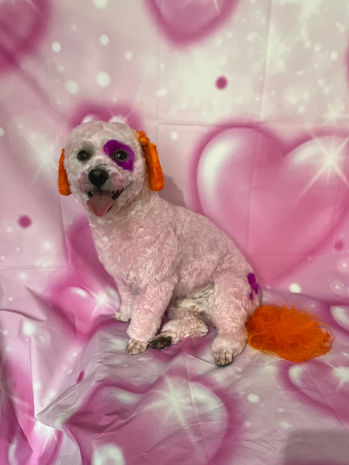 Creative dye can only be done with a grooming service; full groom, half groom, or bath & brush. Dye needs to be applied to a clean coat.